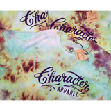 This garment has been hand dyed with character and care. Each garment is unique with varying patterns and colors. Garments have been rinsed, washed, and dried as part of the dying process. To ensure best care, wash alone or with darks in cold water and hang dry.