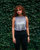 New 'Very Rare' design in Neon Yellow & White Ink on a tri-blend Graphite cropped muscle cut tank.