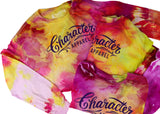 Limited edition long sleeve crop tee, bursting with tones of bright lemon, lime, hot hibiscus pink, and magenta tones. Our CA OG Logo printed on the front in deep purple ink. Each garment is one of a kind, this design combination will not be recreated.